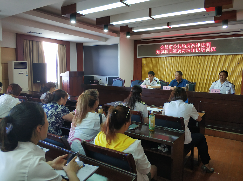为有效预防控制艾滋病的传播和蔓延,保障人民群众身体健康和公共卫生安全,贯彻落实好《公共场所卫生管理条例》等法律法规,提高公共场所经营业主的法律意识和卫生知识水平。2018年7月12日,金昌市疾控中心和卫生监督执法局联合举办公共场所经营单位负责人法律法规和艾滋病防治知识培训班,市区各大宾馆、普通旅馆业、大型美发美容业、桑拿沐浴场所、娱乐服务业等公共场所负责人和管理人员近百人参加培训。